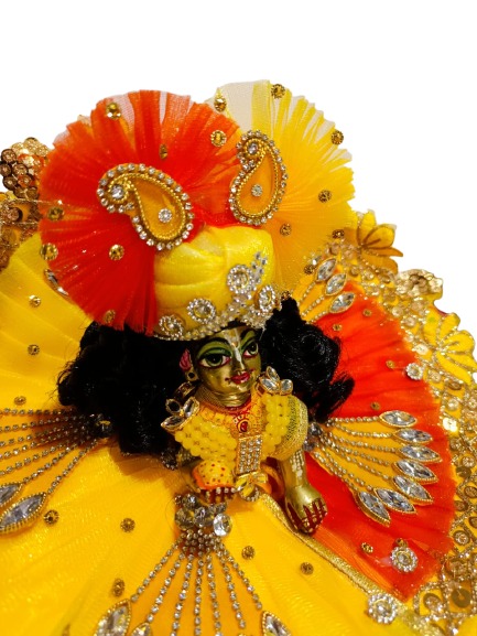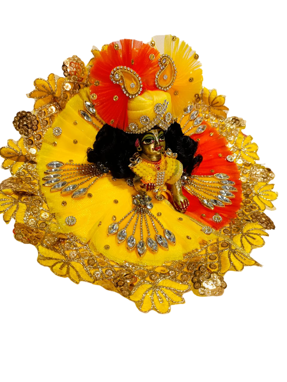 Adorn your beloved Laddu Gopal with this beautiful yellow fancy poshak, specially designed for temple decor and festive occasions like Janmashtami. Made with soft, breathable fabric perfect for summer, this elegant dress features intricate detailing and divine charm, reflecting the joyful spirit of Lord Krishna. Ideal for daily worship, festive celebrations, or special gifting, this vibrant poshak enhances the divine aura of your deity idol.